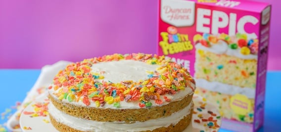 Last summer, Conagra launched Duncan Hines Epic Baking Kits with Fruity Pebbles that featured the cereal as a batter mix-in, frosting flavoring and as a topping. The baking mix has posted a "solid" return since its debut, according to Conagra, with Epic Fruity Pebbles ranking as the top-selling new item in the baking category in 2021.