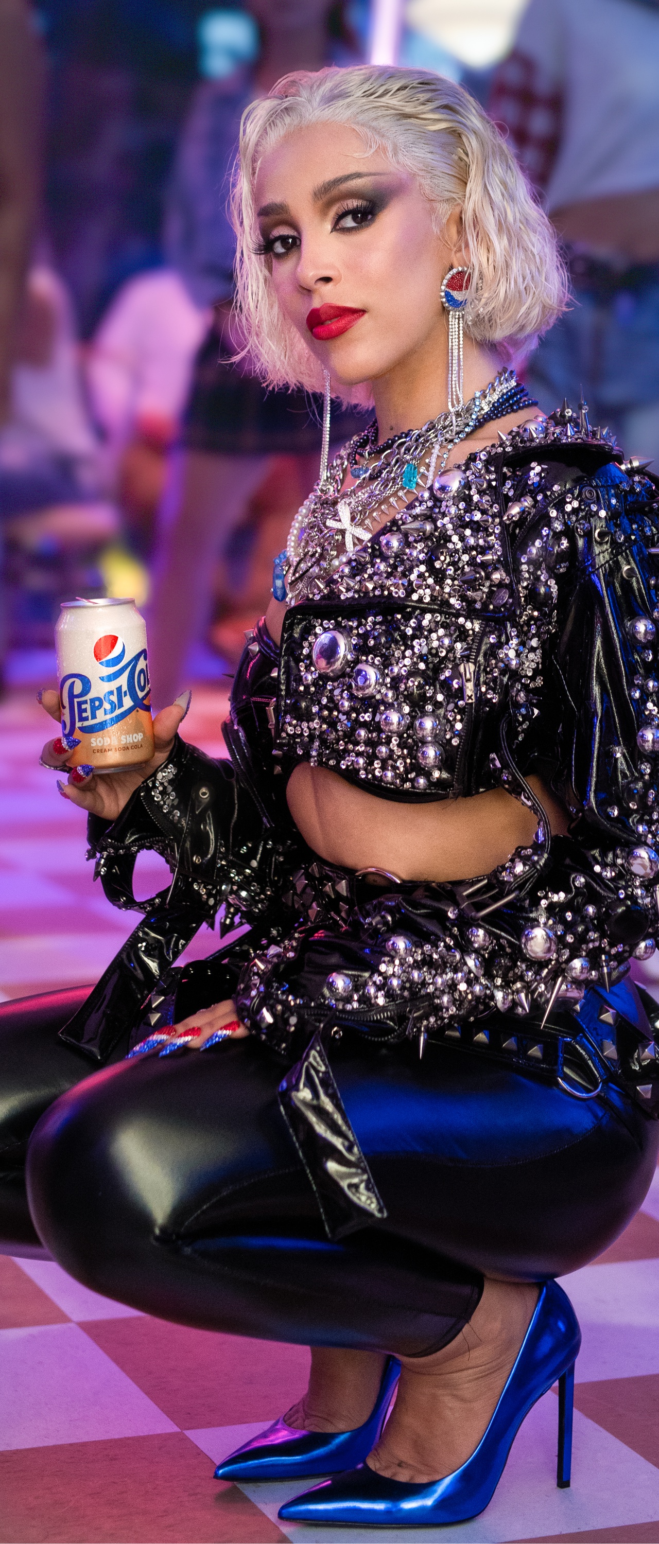 While many signifiers of the Pepsi-Cola Soda Shop campaign are distinctly vintage, Pepsi is adding modern touches in partnering with Doja Cat. The VMA host, who is nominated for five awards and will also perform at the MTV show, climbed the charts partially thanks to her social media savvy. Several of her songs, like "Say So" and "Get Into It (Yuh)," have become viral sounds on TikTok, a channel on which Pepsi plans to activate with its broader media plan for Pepsi-Cola Soda Shop.