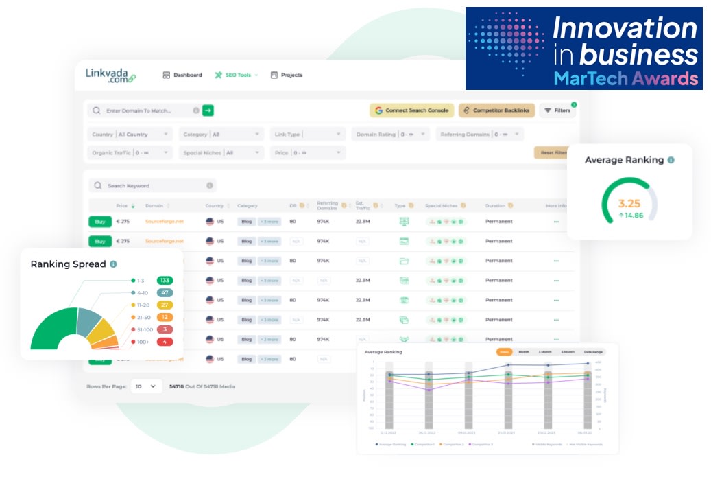 At the core of Linkvada's offerings is its commitment to empowering users through technology. With user-friendly filter options such as country, category, domain rating, referring domains, traffic, price, and more, the platform ensures that advertisers can effortlessly select the most effective tools and strategies for their unique projects. Additionally, Linkvada provides robust paid subscriptions, including access to an extensive SEO dashboard, a comprehensive Rank Checker, and practical features like budget management.